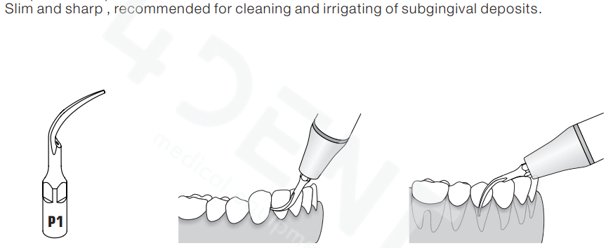 Stosowany do usuwania złogów poddziąsłowych i irygacji.